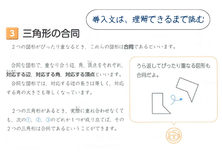 軽く読み飛ばしてしまいがちですが、「ここで何を学ぶ単元なのか?」をよく確認しておくと、その後の例題演習がスムーズです。