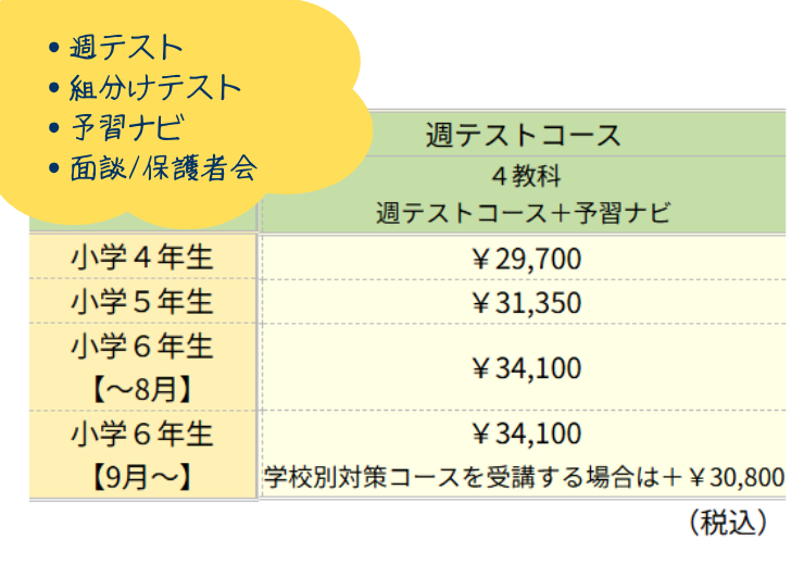 組み分けテストで分けられたコースで、週テストを受けるようになります。